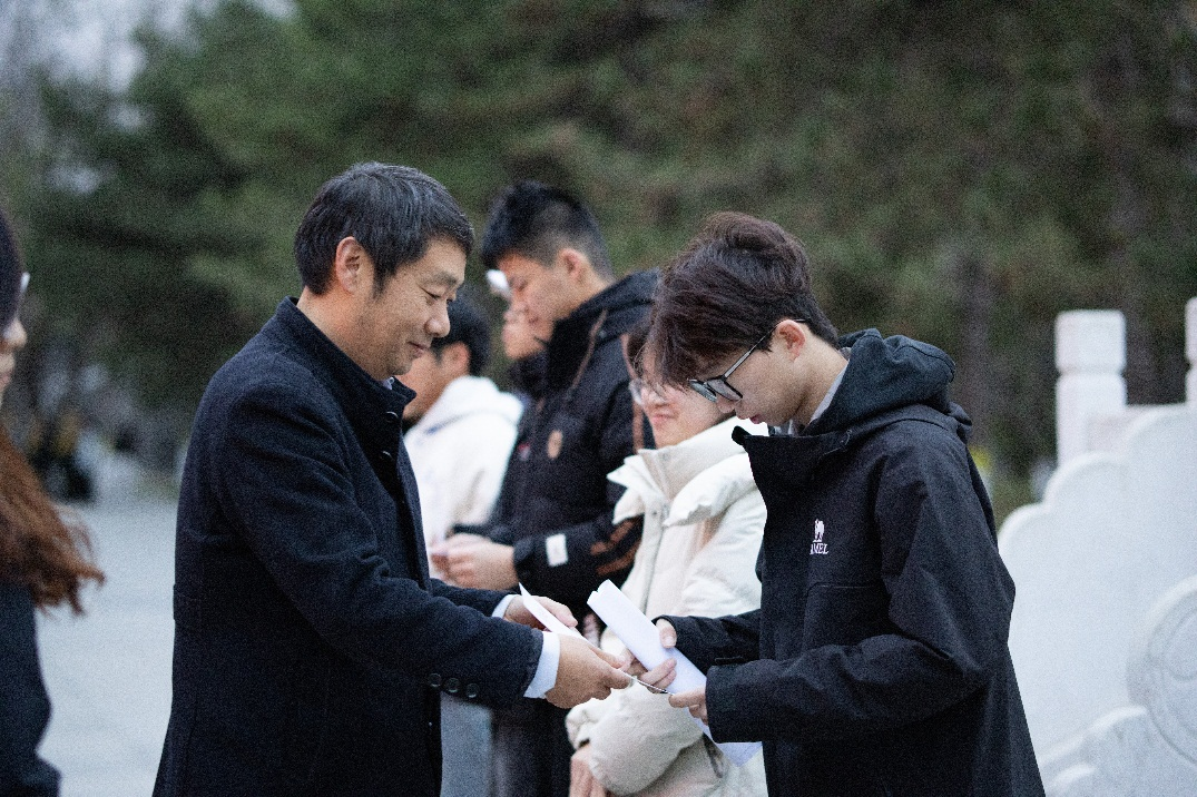 清晨,寒风凌冽,随着国旗护卫队迈着整齐划一的步伐入场,全场师生肃立致敬在雄壮的国歌声中,五星红旗冉冉升起,迎风飘扬。副院长刘东为获评机材学院“学习领航奖”的24级学生代表颁发了荣誉证书。