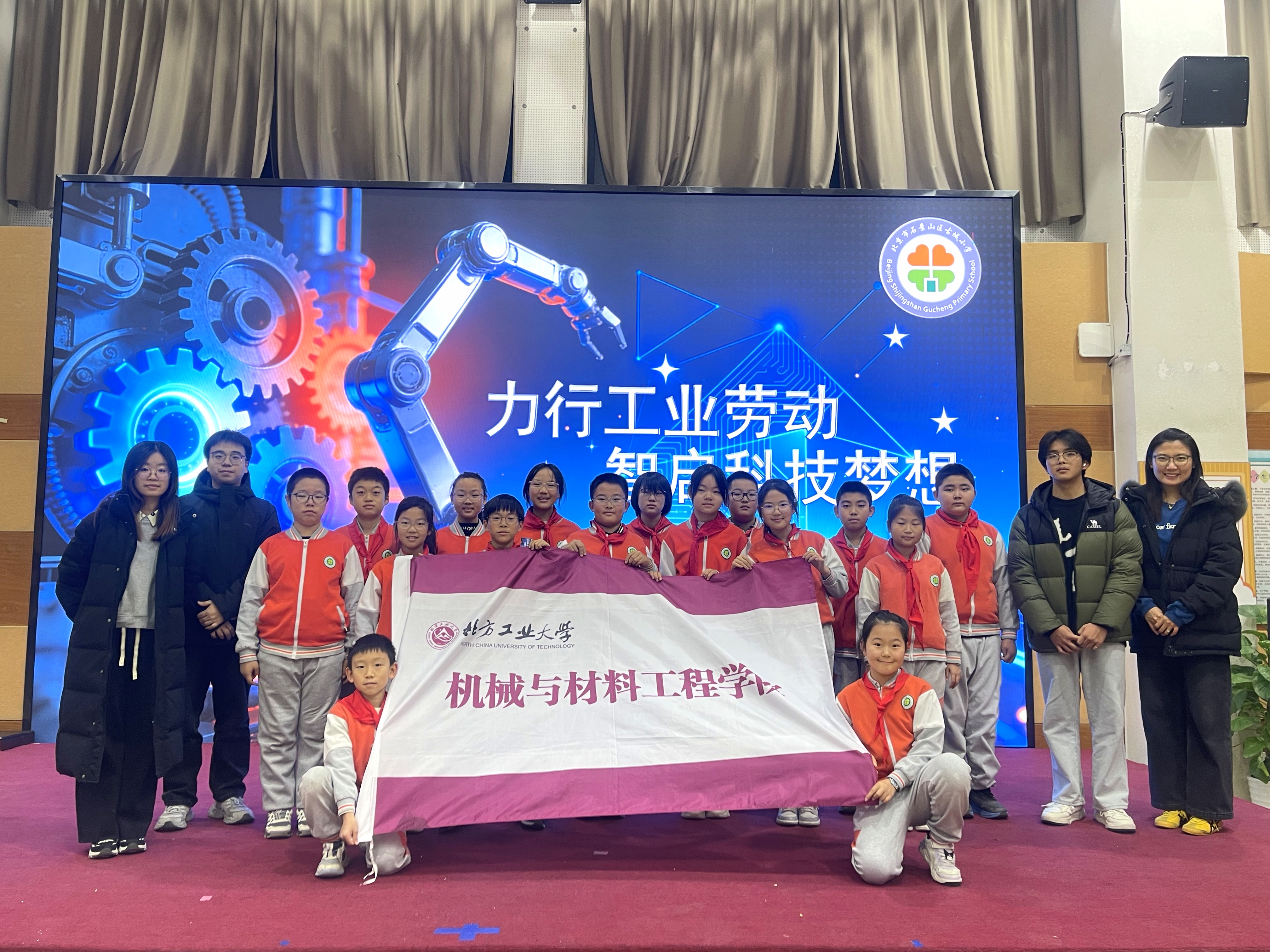 为深化校地协同育人,弘扬科学精神,提升青少年科技创新素养,12月8日下午,机材学院组织志愿者服务队前往石景山区古城小学,协助开展“力行工业劳动,智启科技梦想”校园科技嘉年华活动。