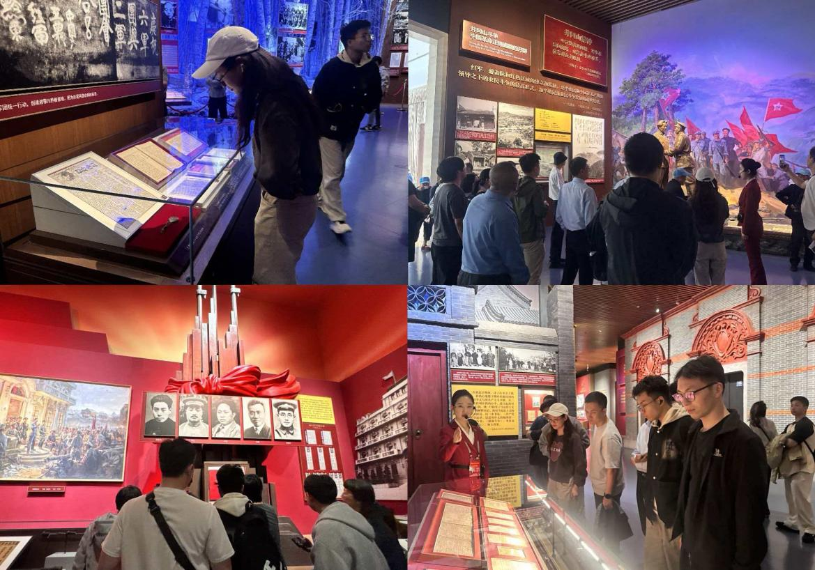 步履践学,感悟初心。理论学习结束后,4月26日下午,学院组织党团员骨干走进中国共产党历史展览馆,开启沉浸式红色研学之旅。馆内一张张珍贵照片、一件件历史实物、一幕幕复原场景,全方位、立体化展现了中国共产党百年来波澜壮阔的奋斗历程。同学们缓步参观、认真聆听、驻足沉思,系统了解党在不同历史时期的重大事件、伟大成就与宝贵经验,切身感悟共产党人不怕牺牲、艰苦奋斗、矢志为民的崇高精神。行走在红色长廊中,大家沉浸式感悟百年党史的厚重与辉煌,深刻体会今日幸福生活的来之不易,进一步明晰新时代青年的责任与方向。
